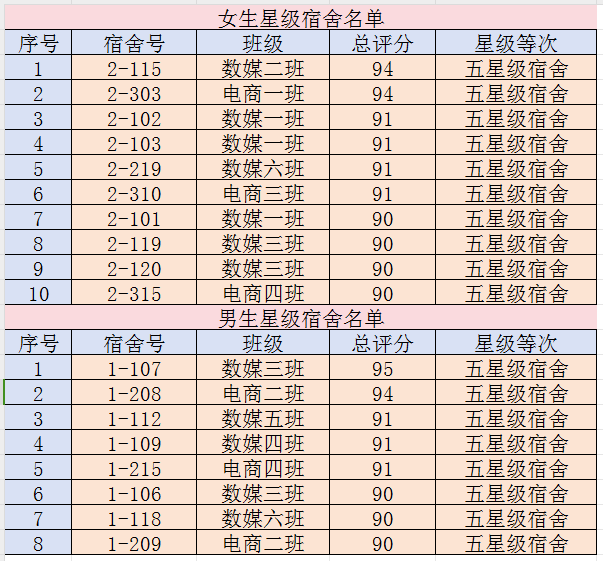 活动覆盖全系90间宿舍及两间自习室,按照“自查自纠、多轮考评、综合评定、结果公示”的流程推进,各宿舍围绕卫生、安全、文化等方面积极整改。本次评选使用星级评价,并设定待整改等级。经评审小组严格走访与评议,最终18间宿舍荣获“五星级文明宿舍”称号。