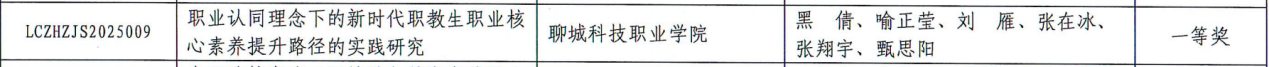11月5日,聊城市职业教育研究课题鉴定结果正式揭晓,我院科研工作再添亮眼成果:黑倩老师主持的《职业认同理念下的新时代职教生职业核心素养提升路径的实践研究》课题研究凭借扎实的研究基础、创新的实践路径与显著的应用价值,荣获一等奖;张在冰老师主持的《“四链融合”背景下职业教育赋能新质生产力内在机理及实现进路研究》课题研究立足职教发展前沿、紧扣区域发展需求,荣获三等奖。